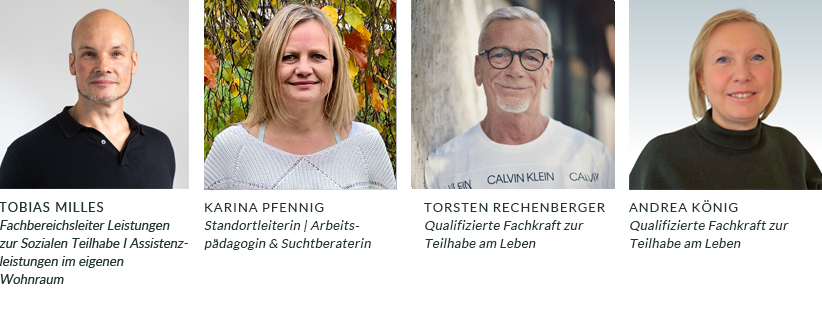 Wir sind ein multiprofessionelles Team bestehend aus Pädagogen, Sozialarbeitern, Suchtberatern, Arbeitserziehern und Ergotherapeuten. Ein besonderer Fokus unserer Arbeit liegt auf der vorgehaltenen Wochenstruktur. Diese umfasst Angebote der Psychoedukation, Gedächtnis-Training, Kommunikations- und soziales Kompetenztraining sowie Freizeitaktivitäten.